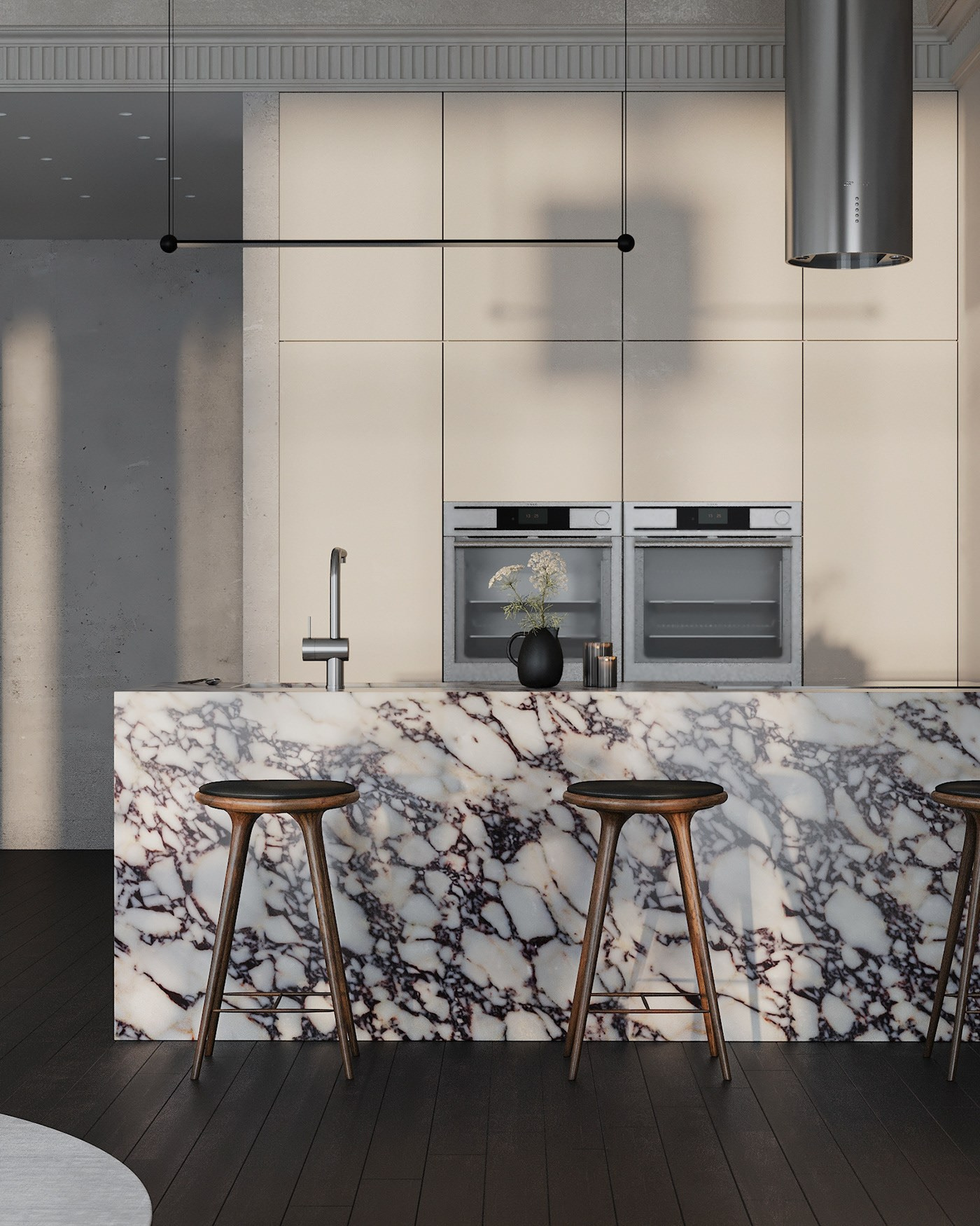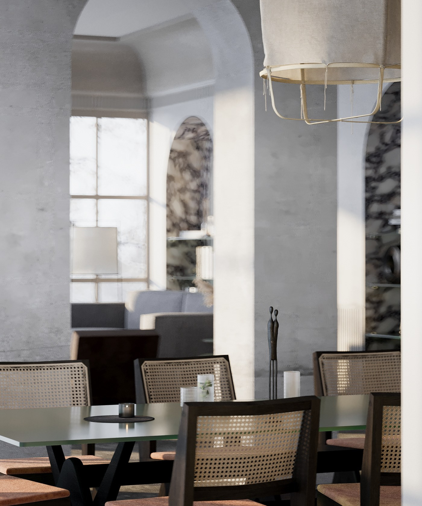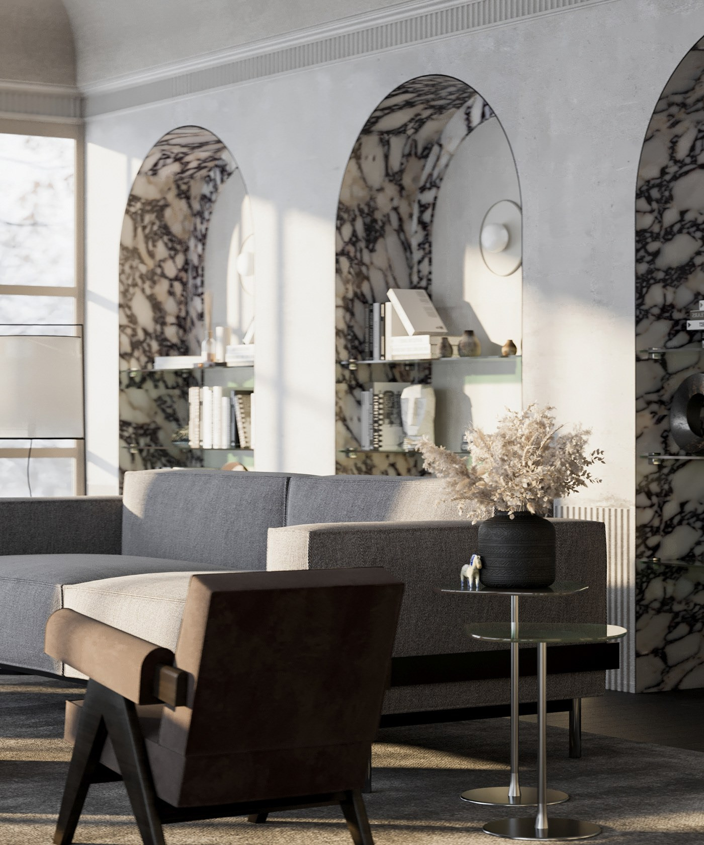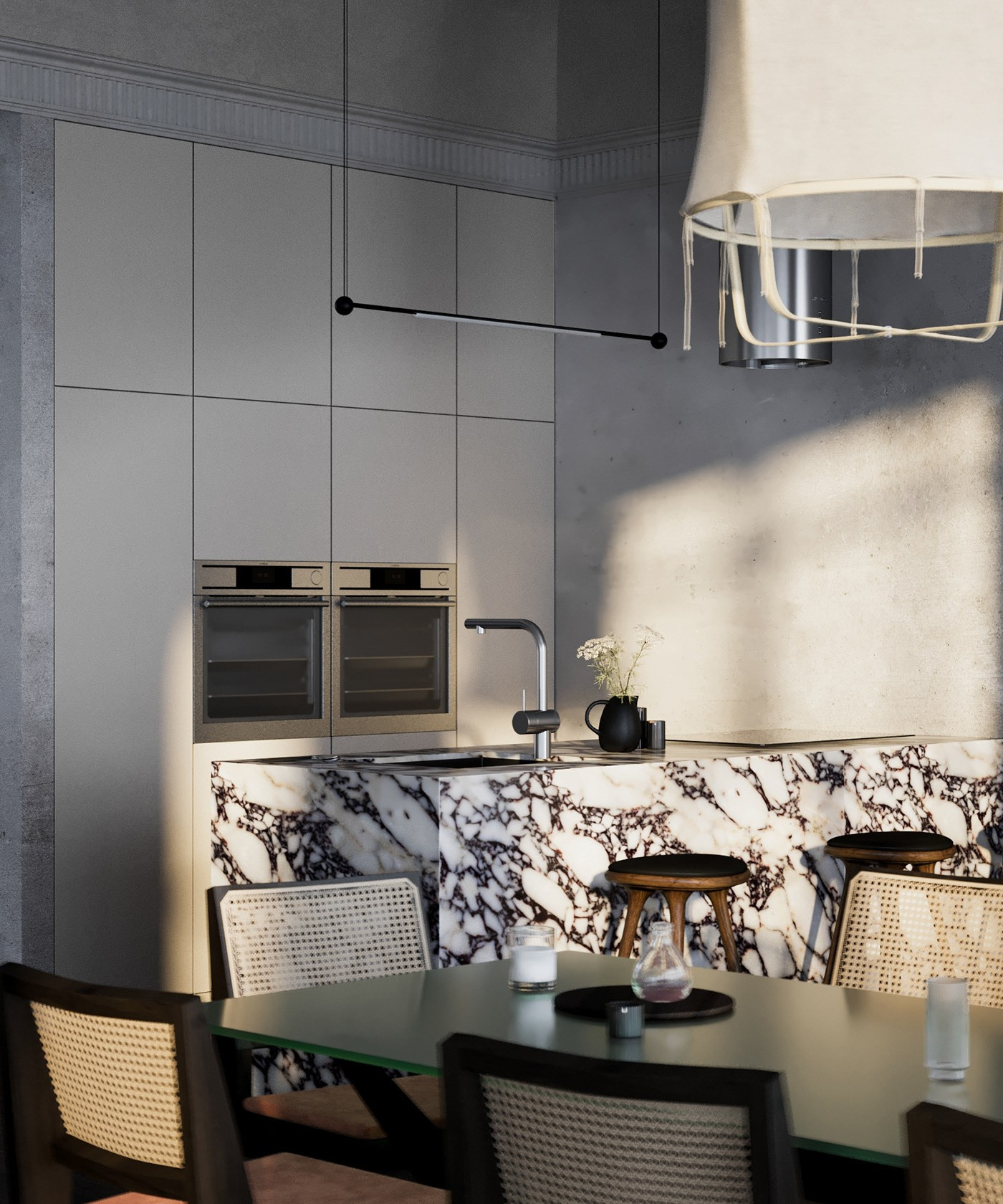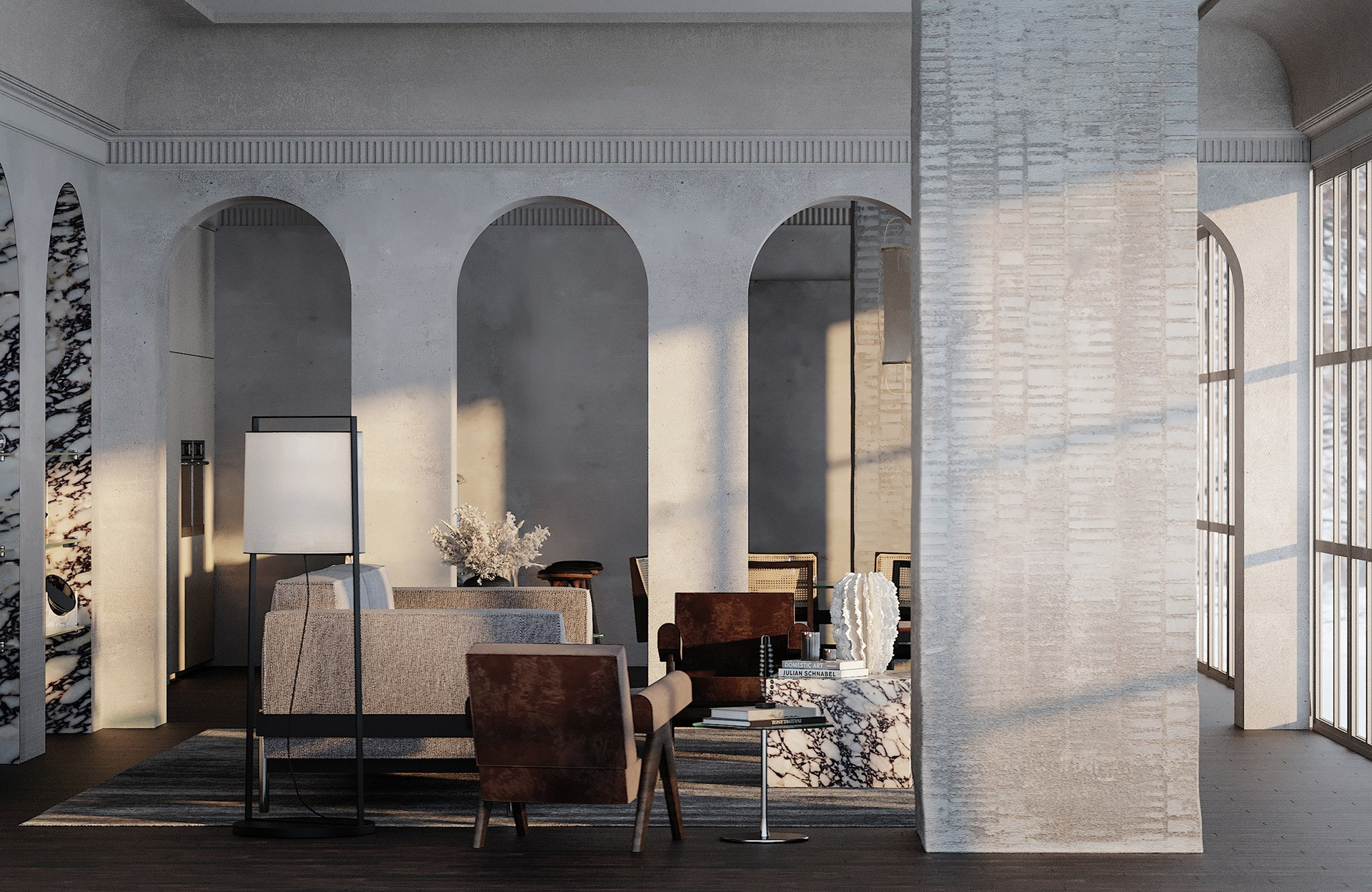 Концепция интерьера квартиры в 2х стилях (минимализм/сдержанная классика) 200 m²