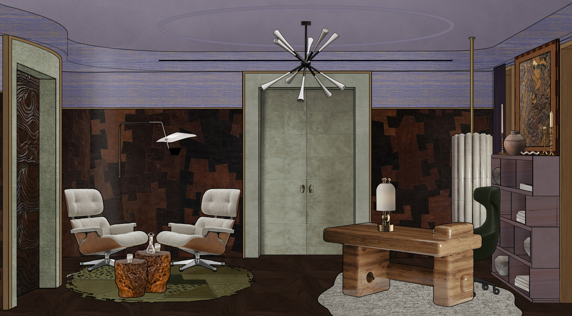 Концепция интерьера квартиры в 2х стилях (минимализм/сдержанная классика) 200 m²